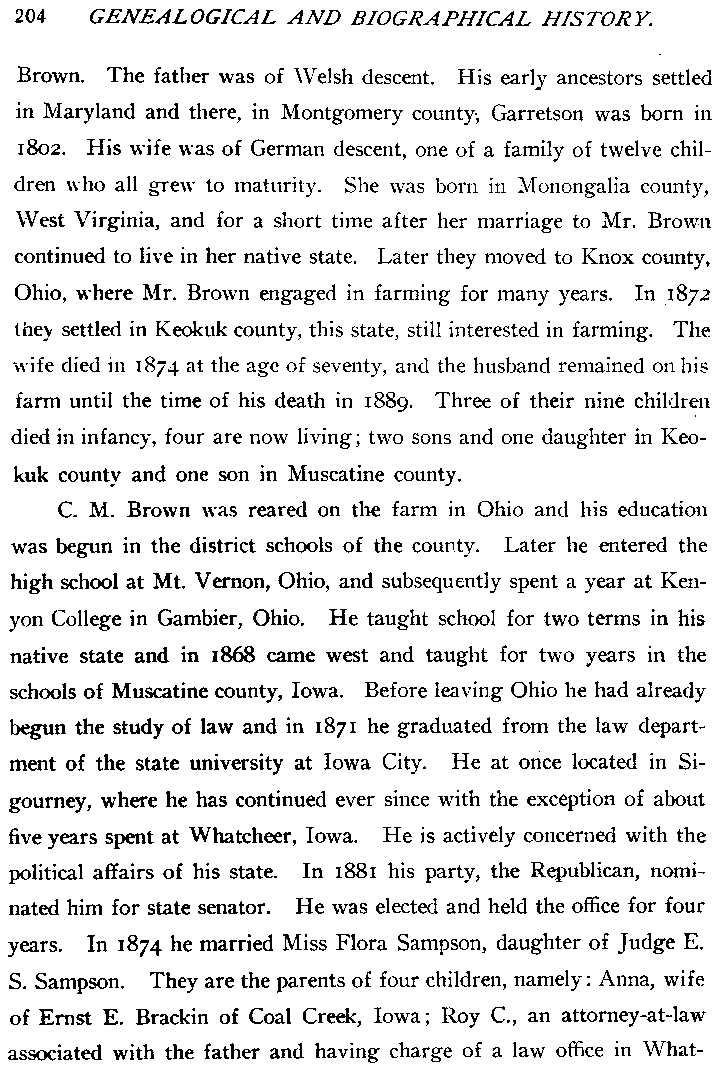 Genealogical And Biographical History Of Keokuk County, Iowa copyright 1903.