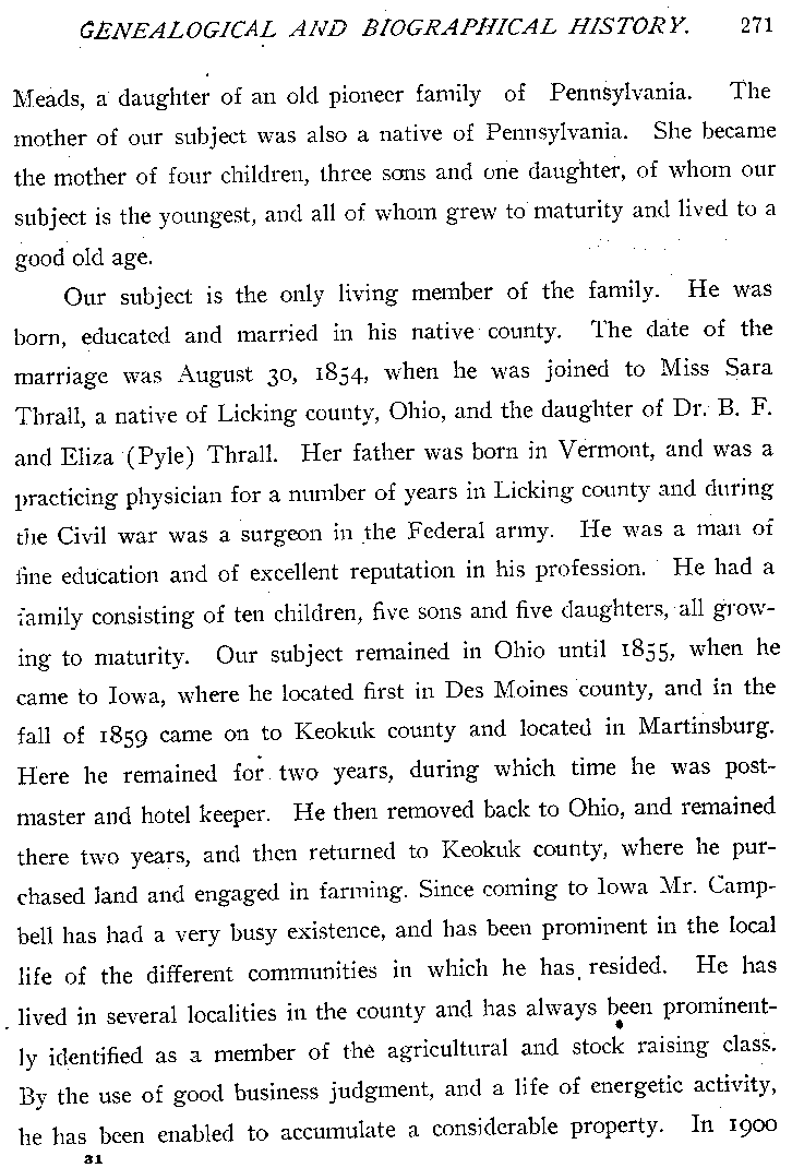 Genealogical And Biographical History Of Keokuk County, Iowa copyright 1903.