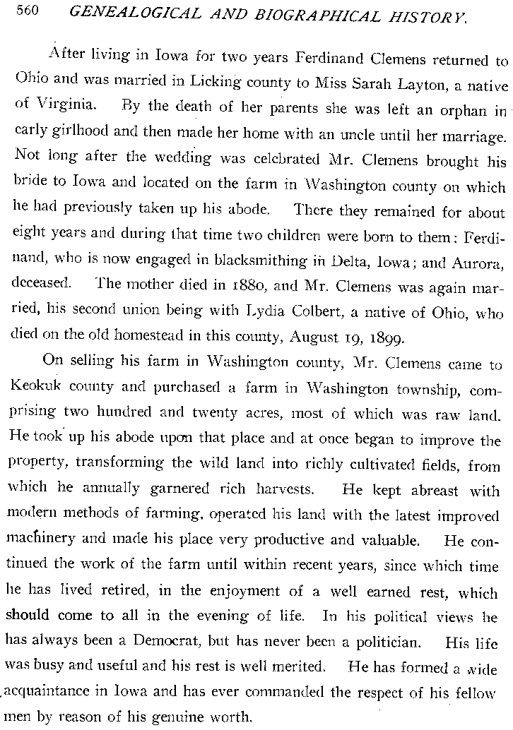 Genealogical And Biographical History Of Keokuk County, Iowa copyright 1903.