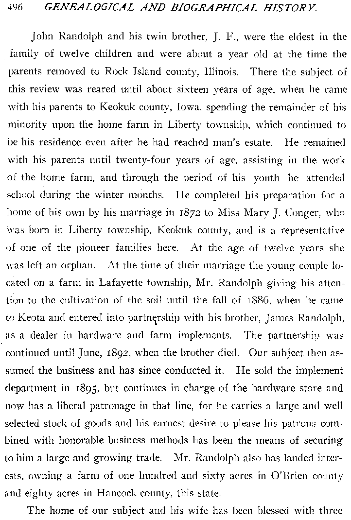 Genealogical And Biographical History Of Keokuk County, Iowa copyright 1903.