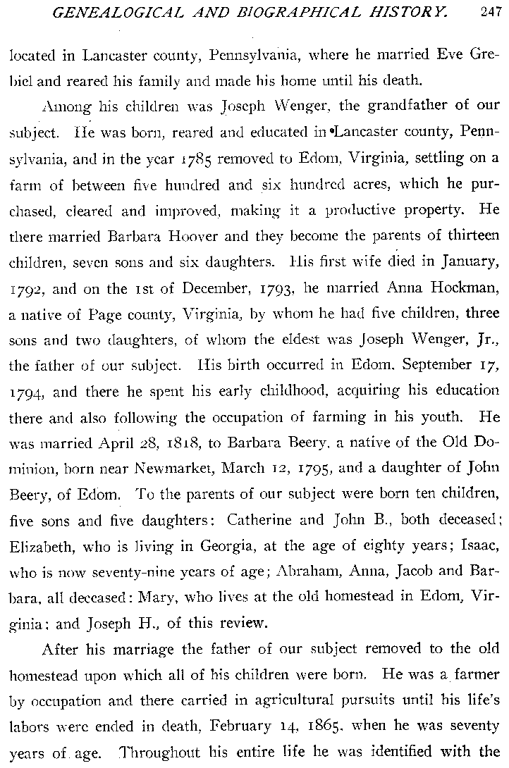 Wenger, Joseph H., b. 15Nov1835