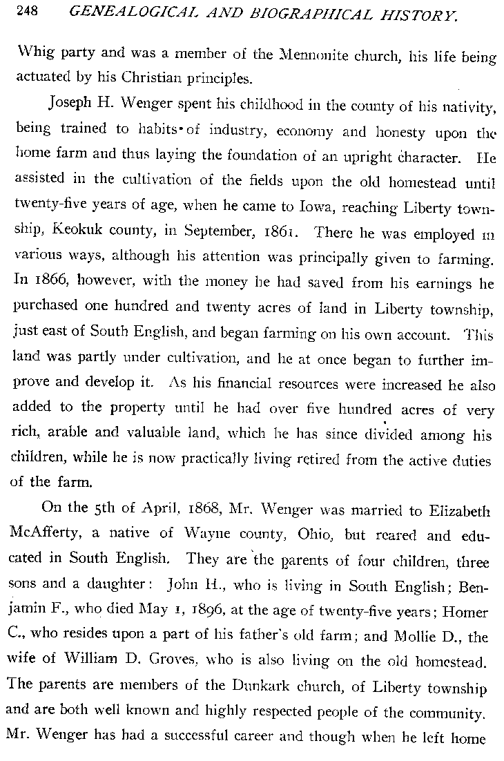Genealogical And Biographical History Of Keokuk County, Iowa copyright 1903.